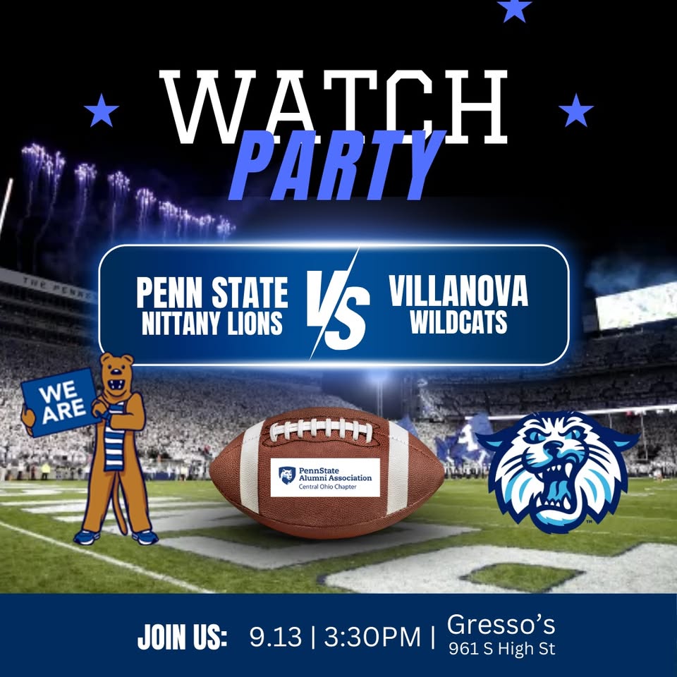 Help us support our Penn State Nittany Lions 🦁 as they take on the Villanova Wildcats. Kickoff is at 3:30PM, but free to join us earlier for our pre-game hang out.🤙